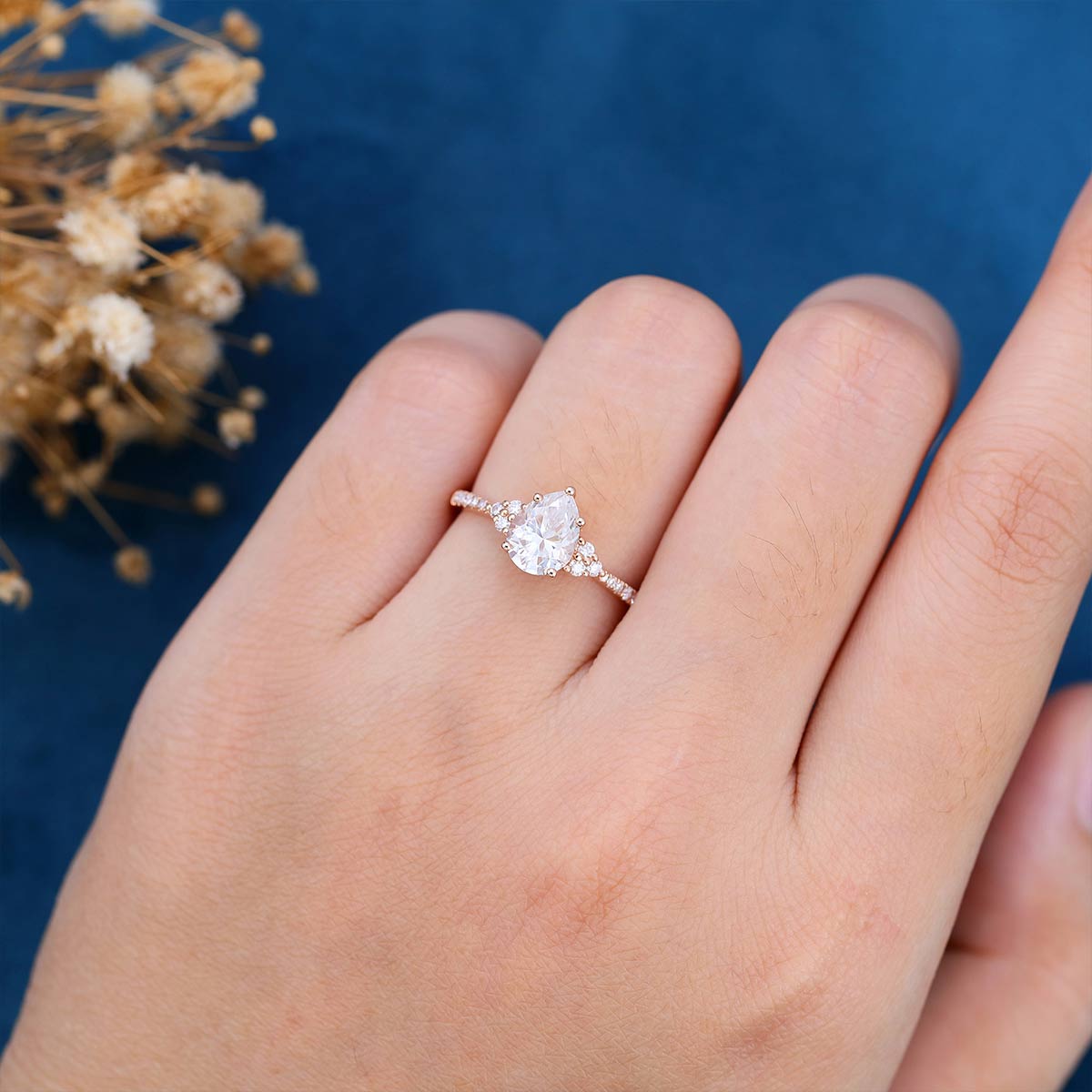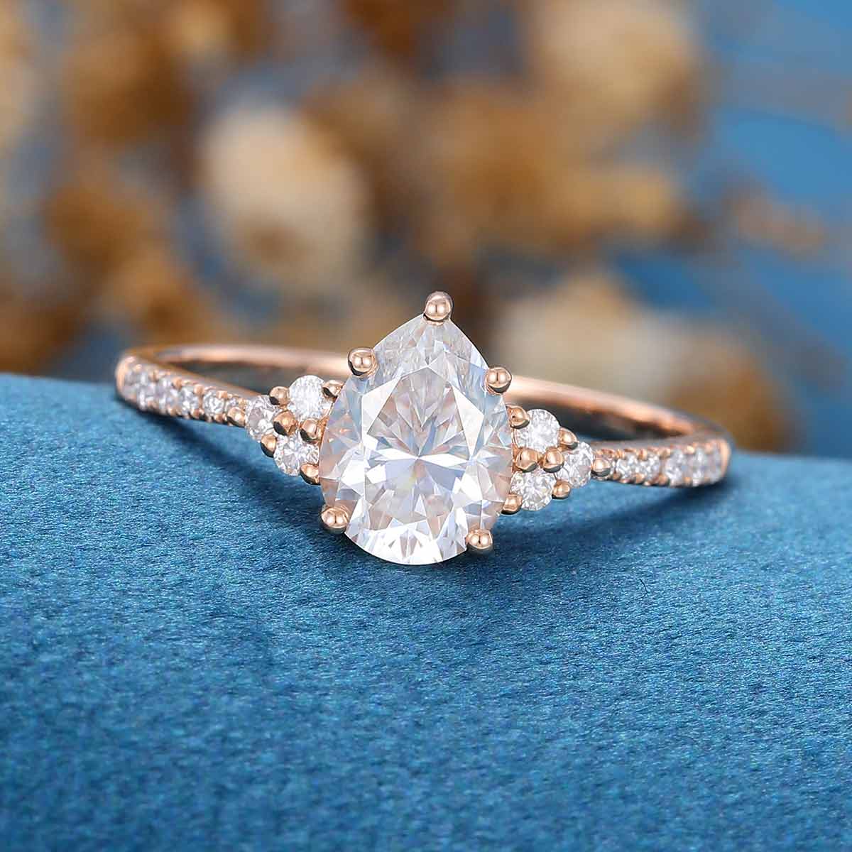 Type: Moissanite1.2 Carat Size: 6 x 8 mm Shape: Pear cut The band Width : 1.6 mm | Thickness : 1.2 mm Total weight: 2.2g (Depending on the ring size) |