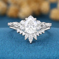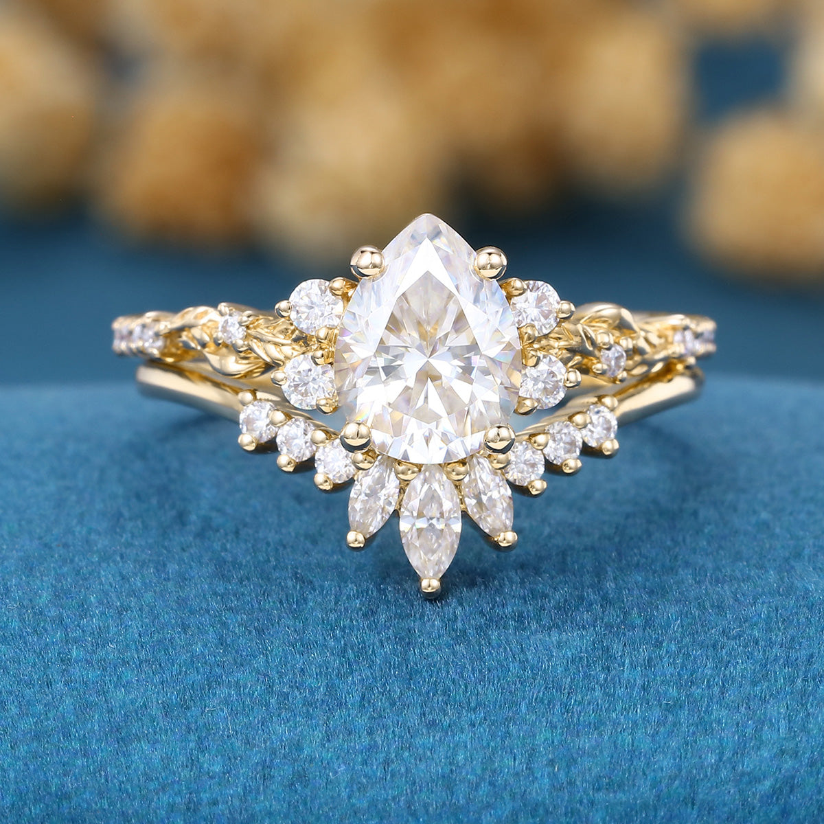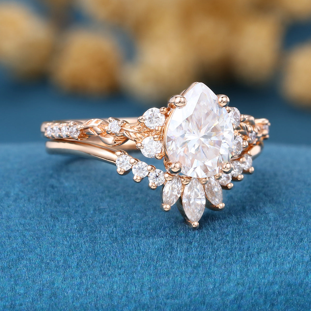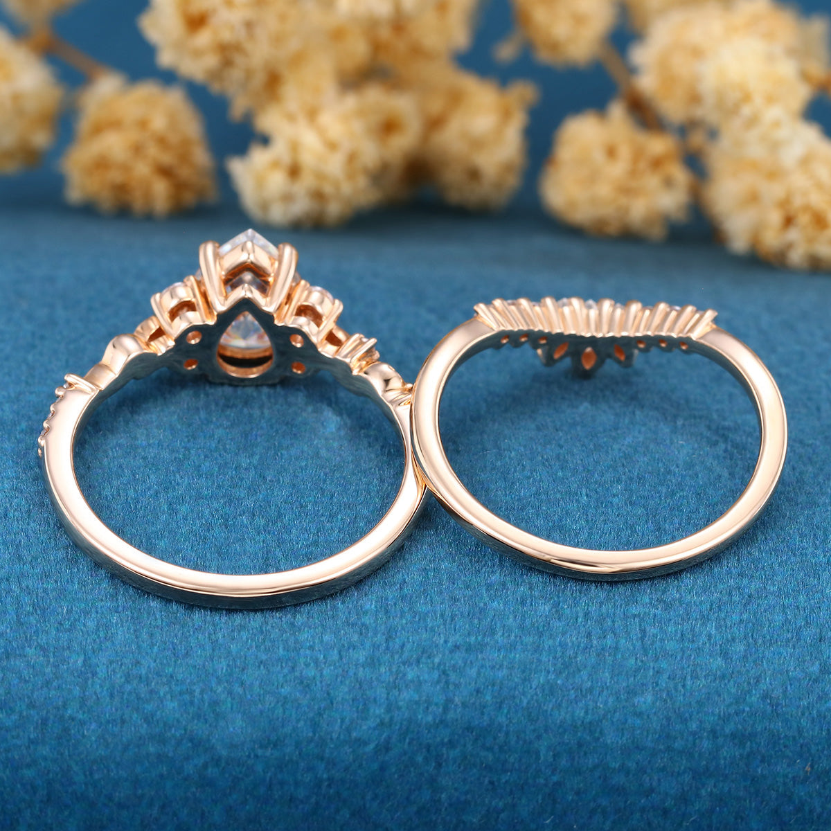 Pear Cut Moissanite Rose Gold Wedding Bridal Set