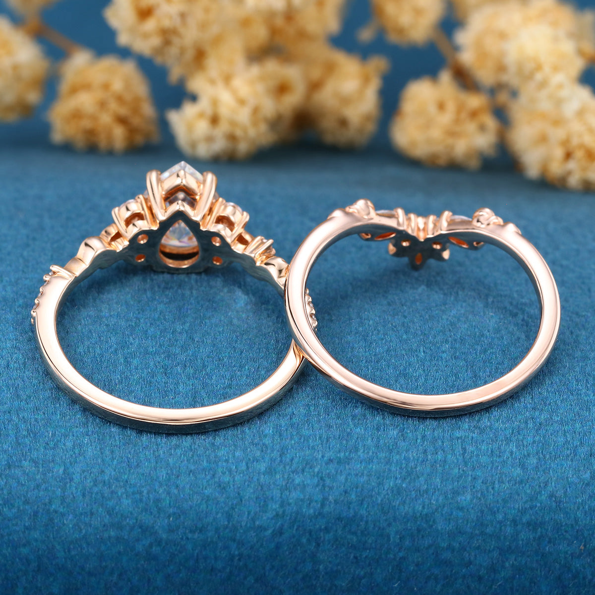 Pear Cut Moissanite Rose Gold Wedding Bridal Set