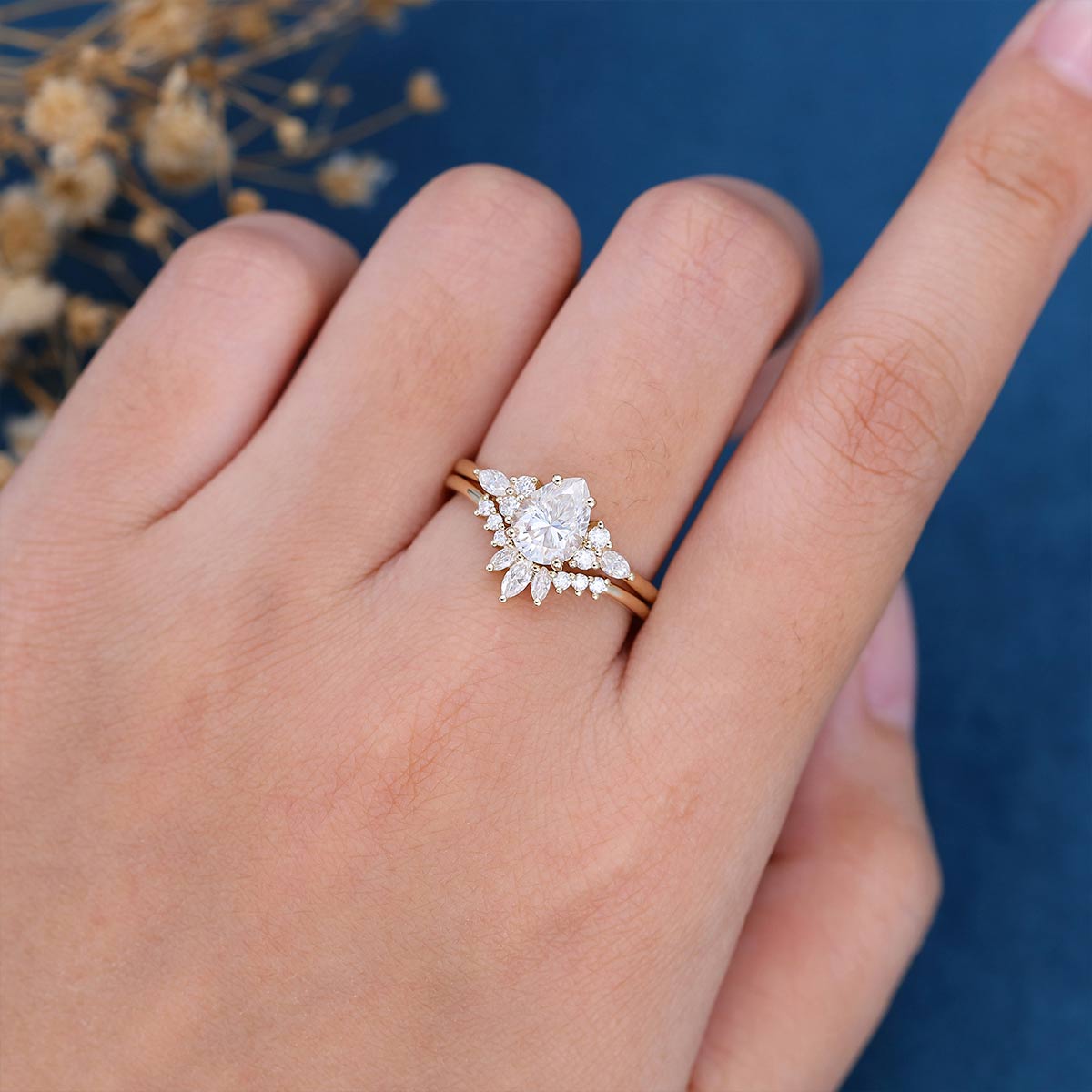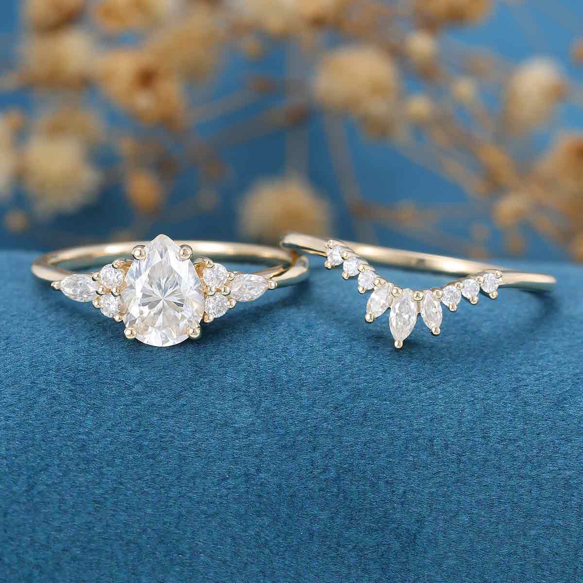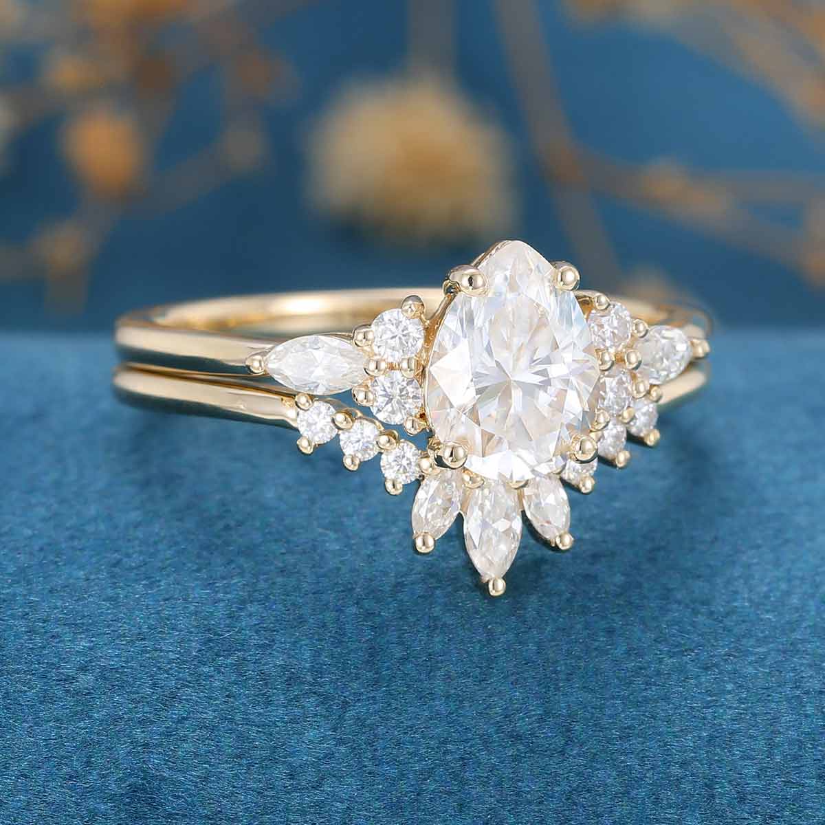 Pear Cut Moissanite Wedding Bridal Set