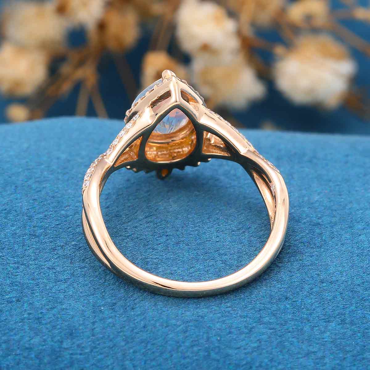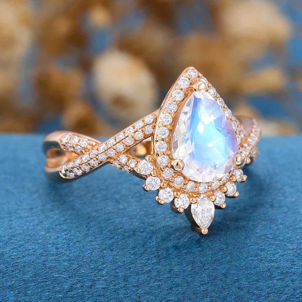 Pear cut Moonstone Solid Gold Engagement Ring