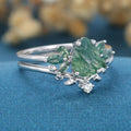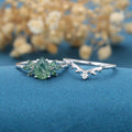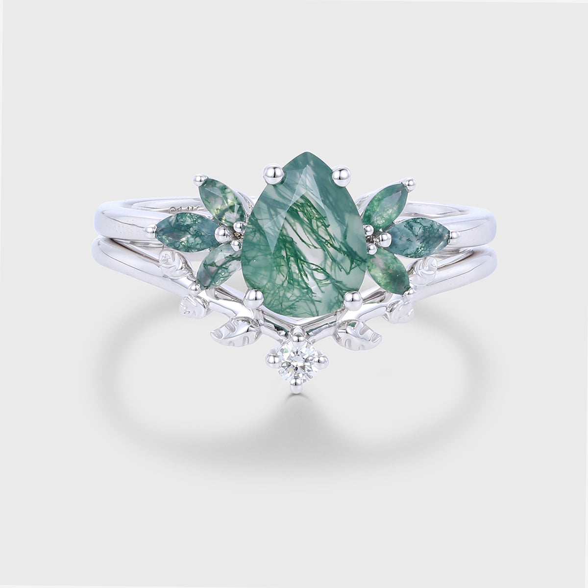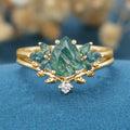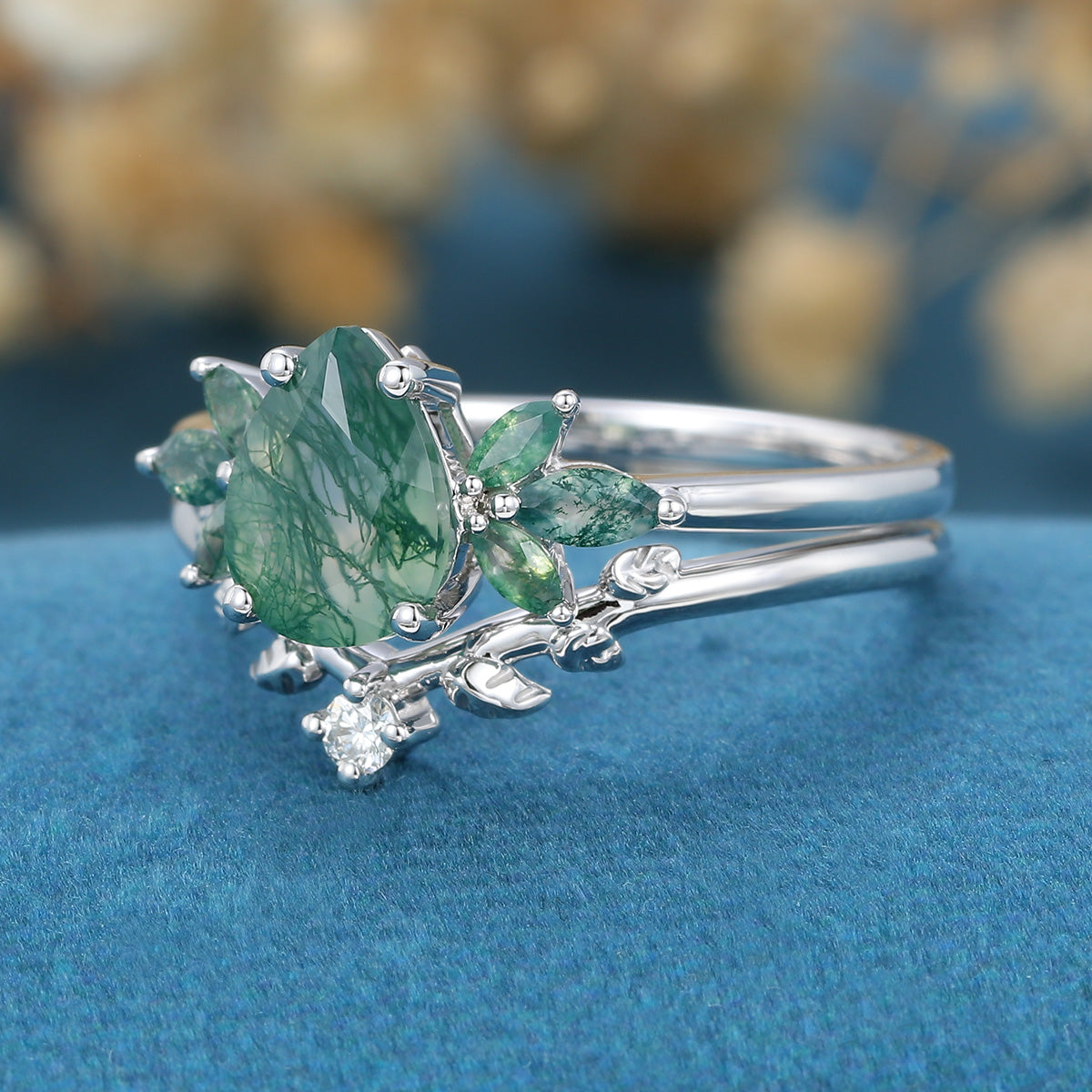 Pear Cut Moss Agate Matching Moissanite | Diamonds Gold Bridal Set