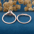 Pear cut Moss Agate Engagement ring + Lab Emerald Curved Wedding bridal set