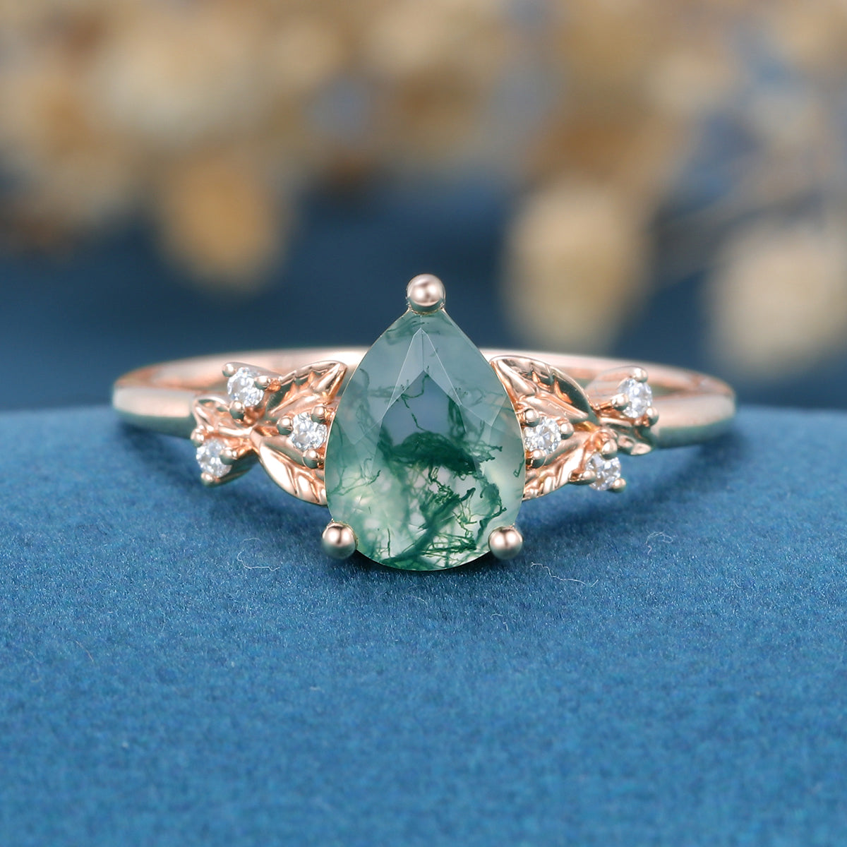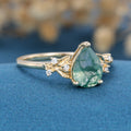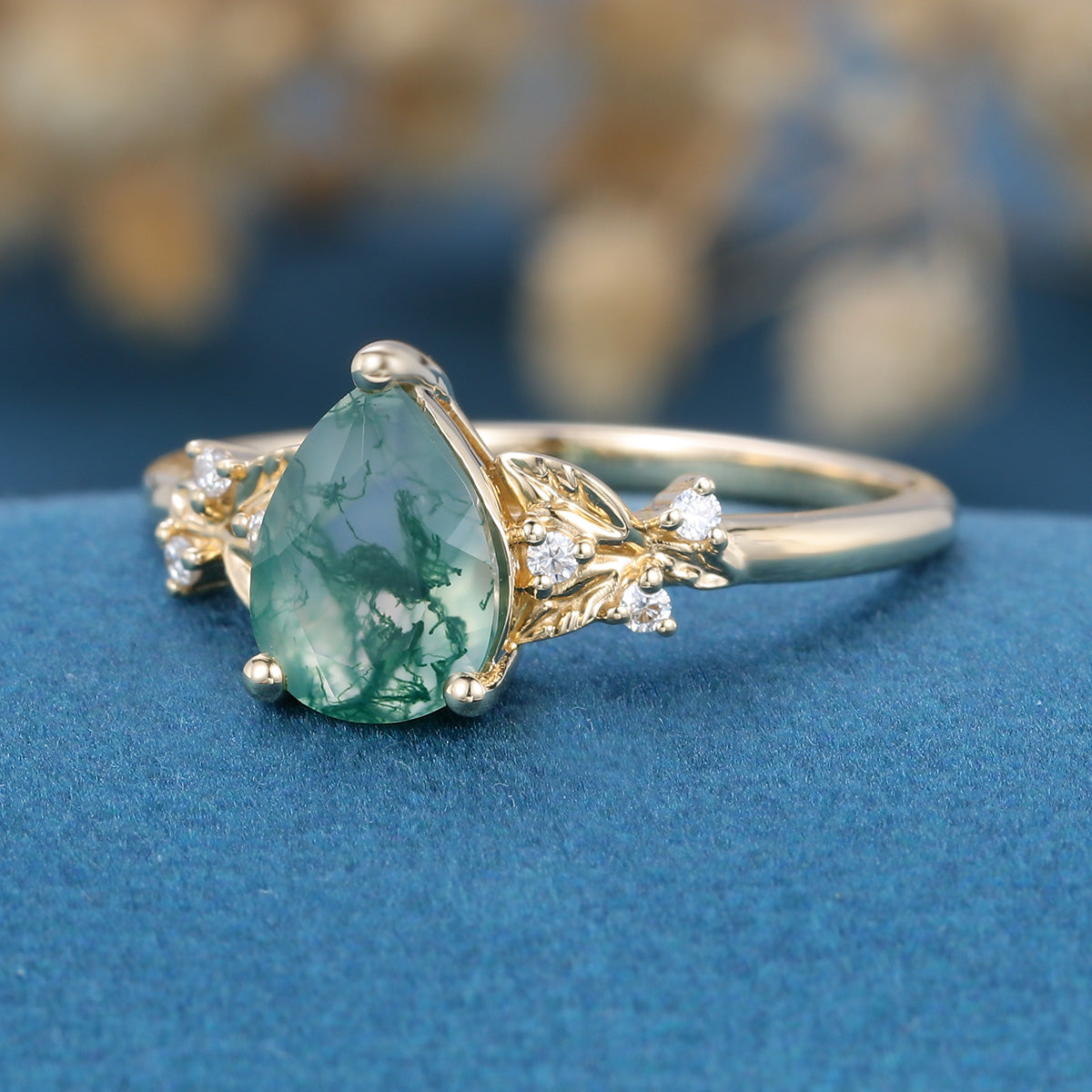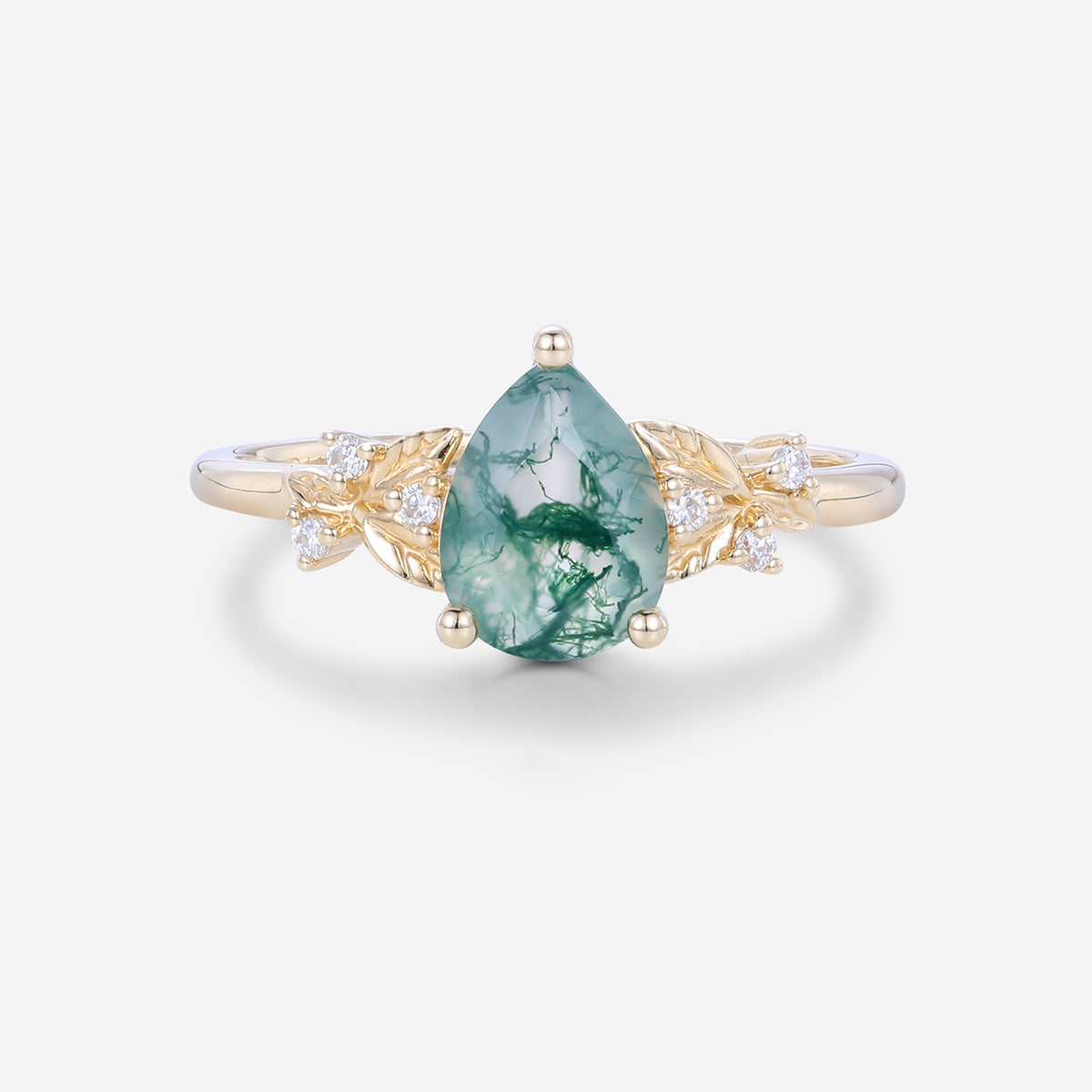 Pear cut Moss Agate Matching Moissanite | Diamonds Gold Engagement Ring