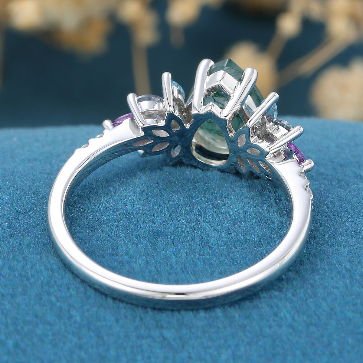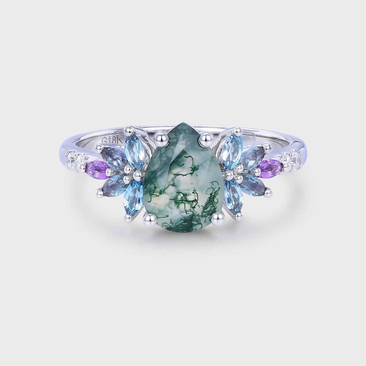 Type: Moss Agate 1.2 Carat Size: 6 x 8 mm Shape: Pear cut Total weight: 2.5g(Depending on the ring size) |
