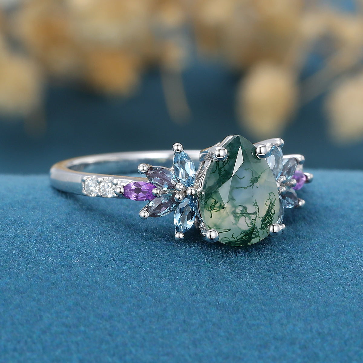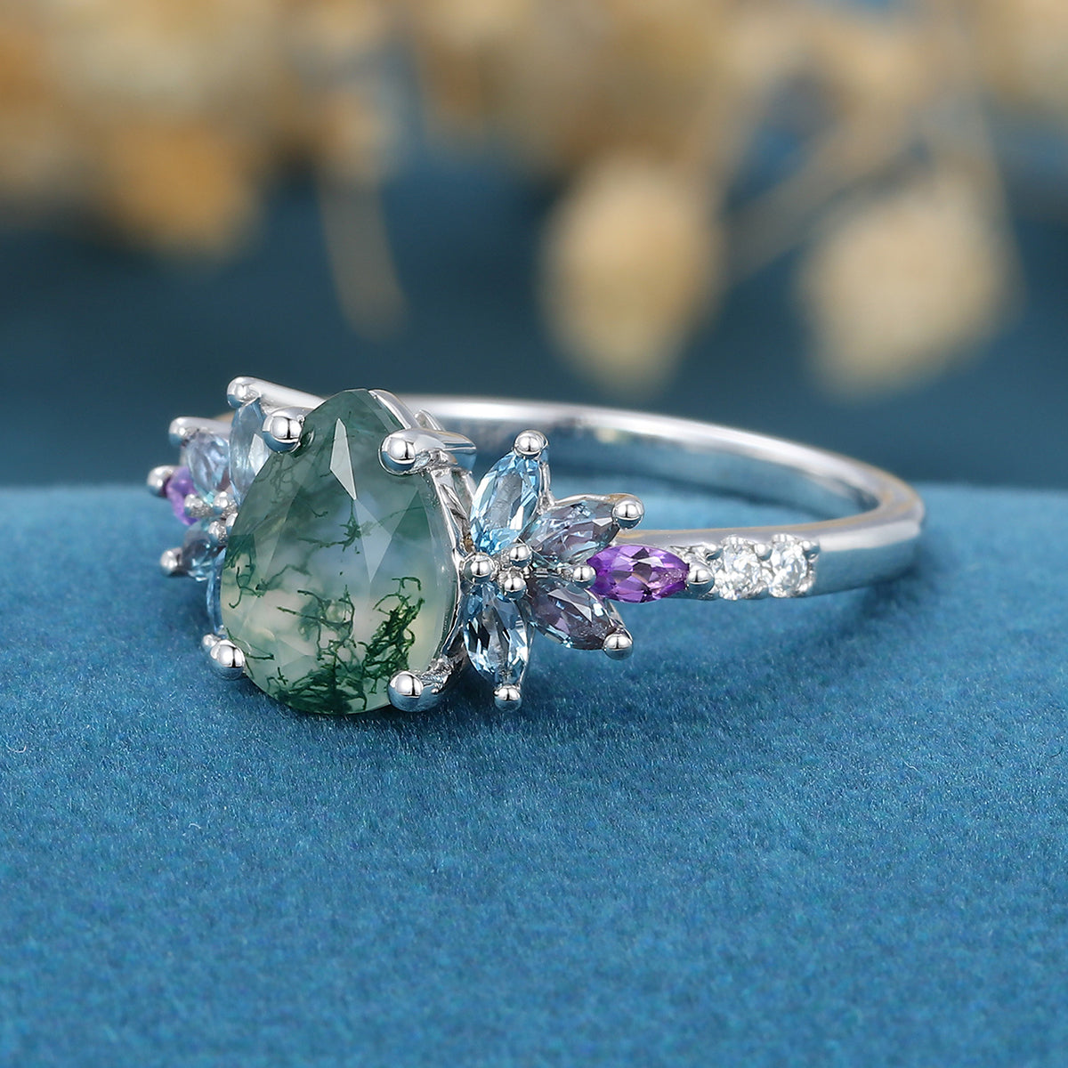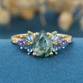 Pear Cut Moss Agate Solid Gold Engagement Ring