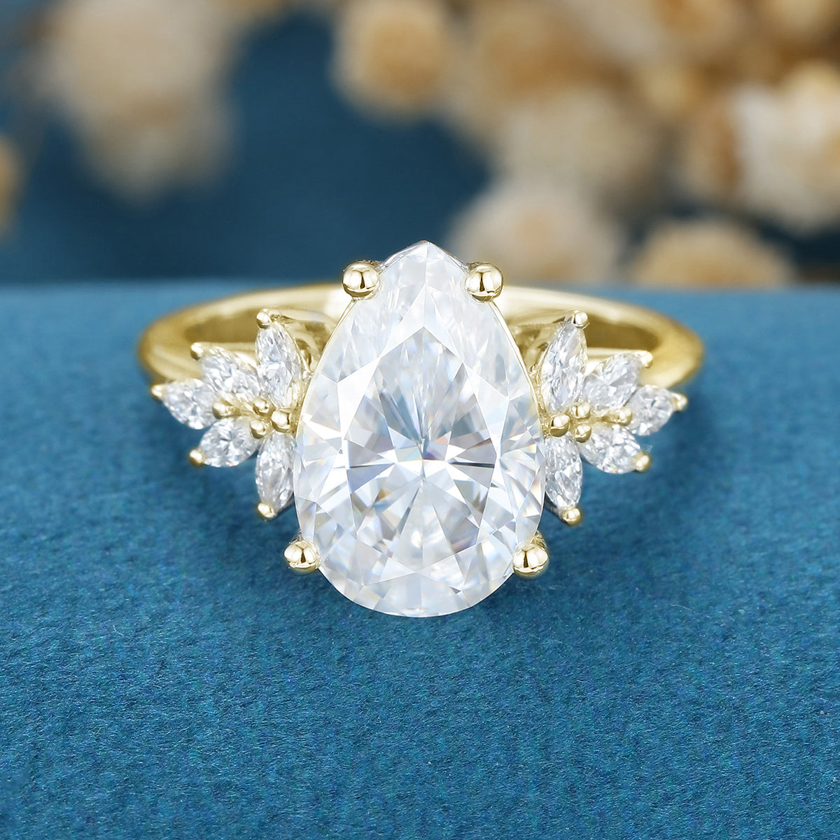 3.0Carat Pear Moissanite Cluster Engagement ring