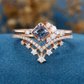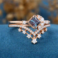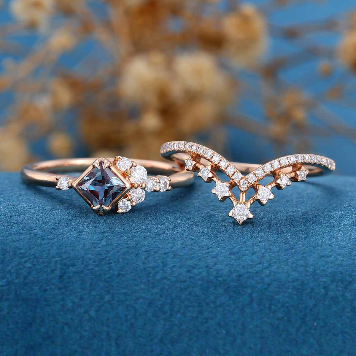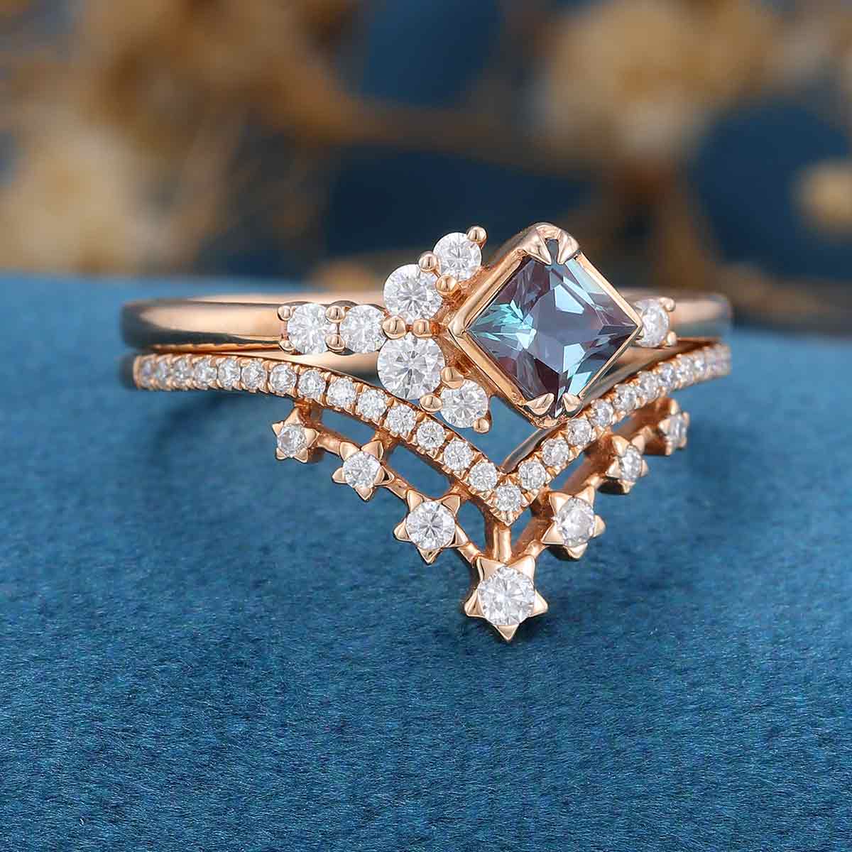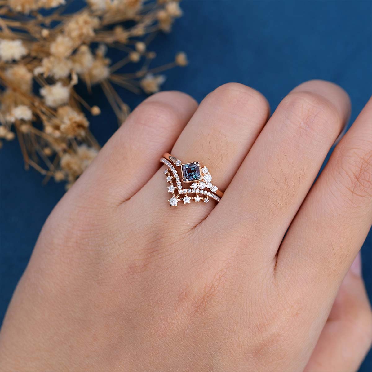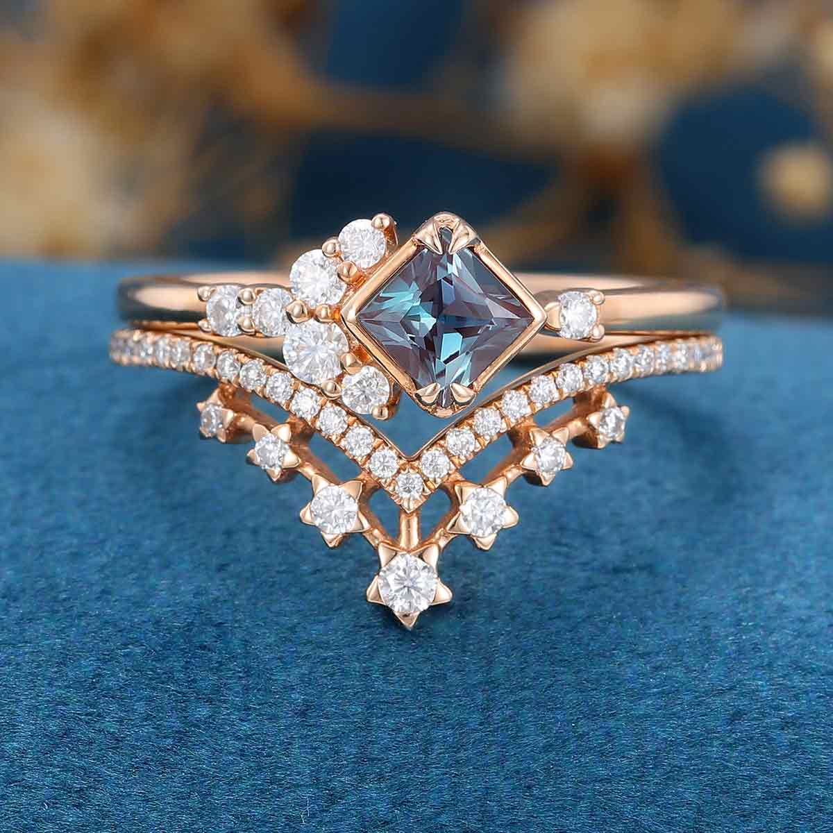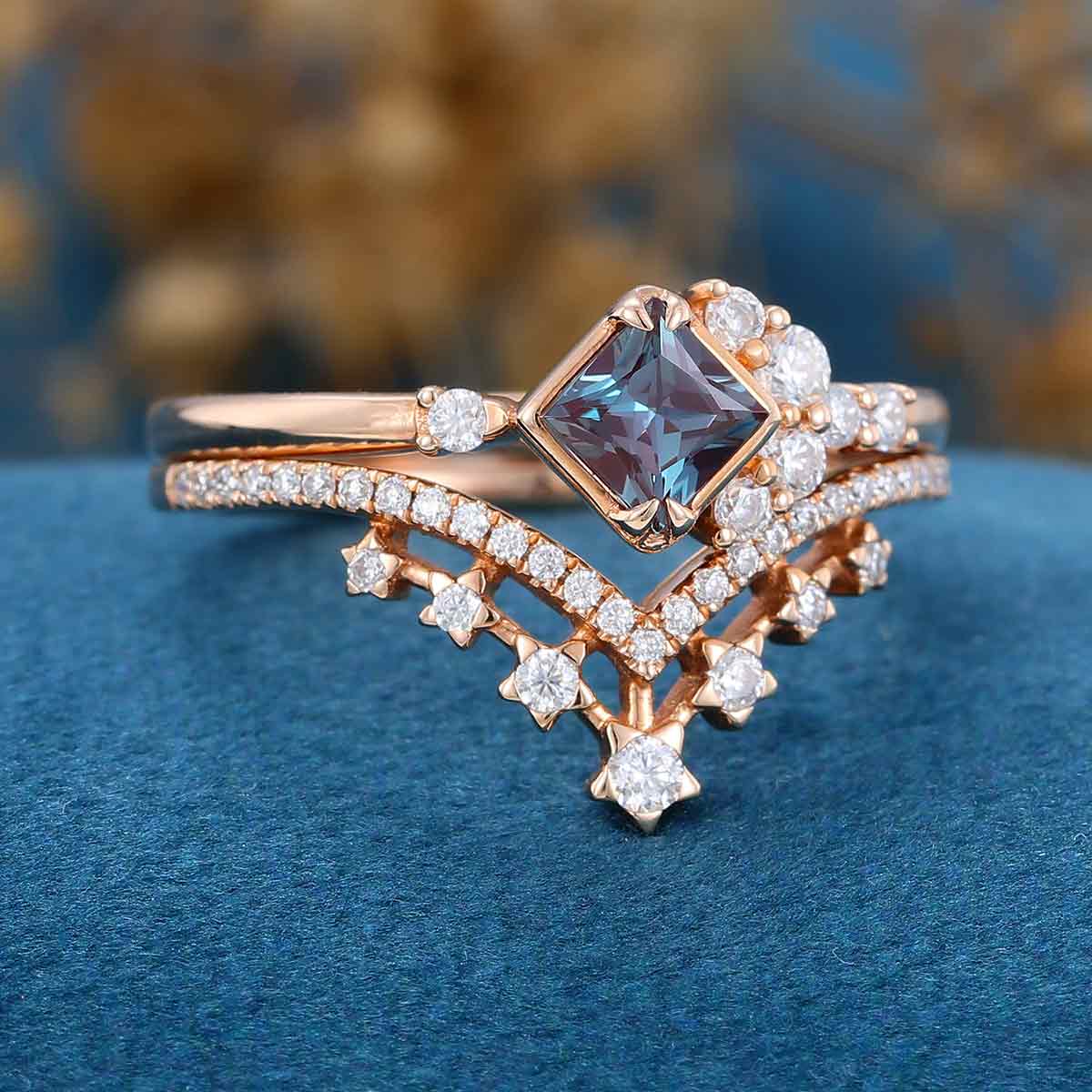 Princess cut Lab Alexandrite | Diamond Wedding Bridal Set