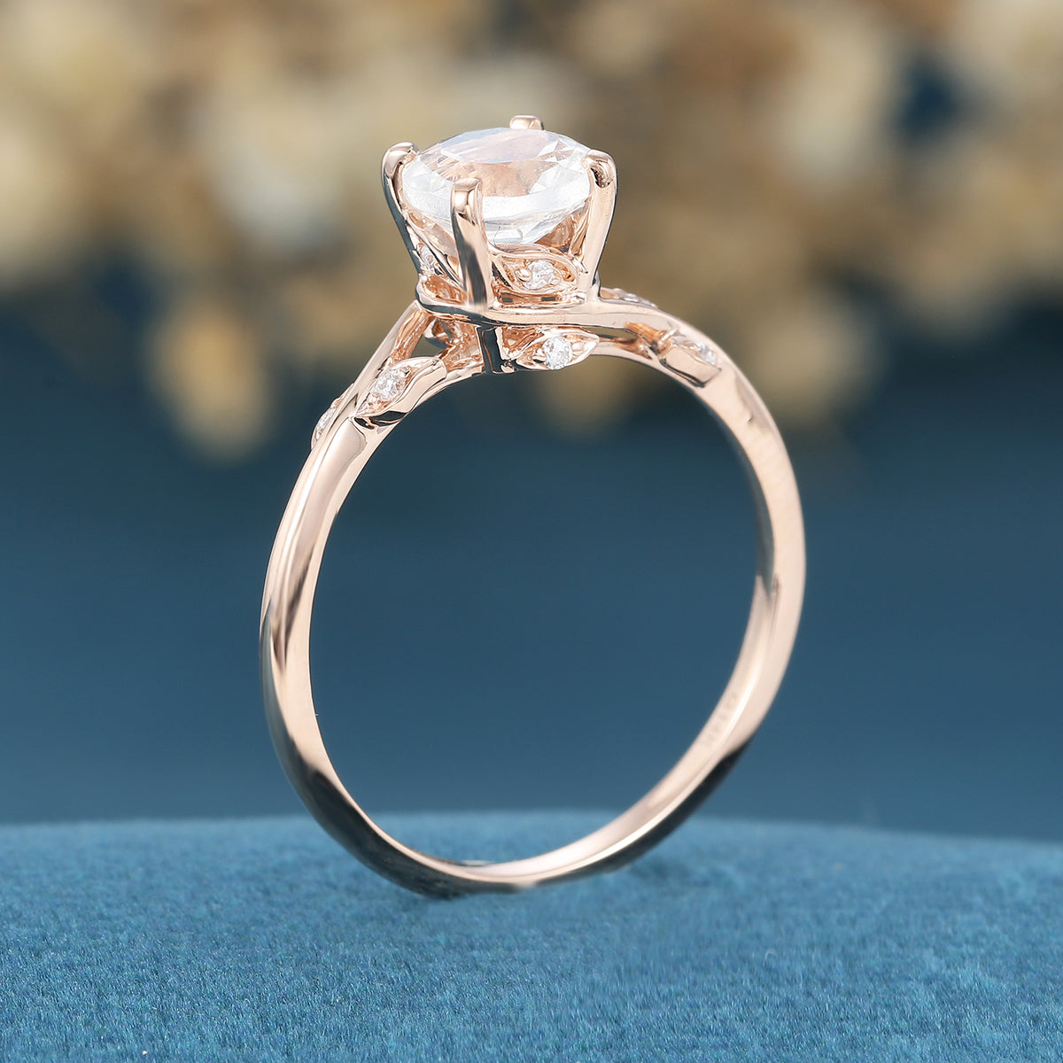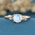 Round cut Moonstone Engagement Ring Matching Moissanite | Diamonds Gold Engagement Ring