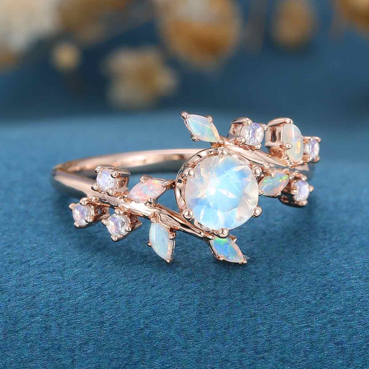 Round cut Moonstone Match Opal | Moonstone Engagement Ring