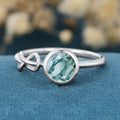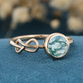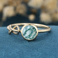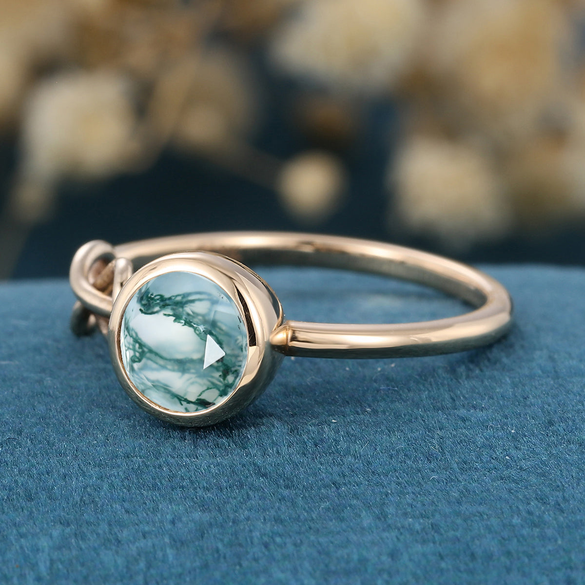 Solitaire Bezel Set Round cut Moss agate Engagement Ring