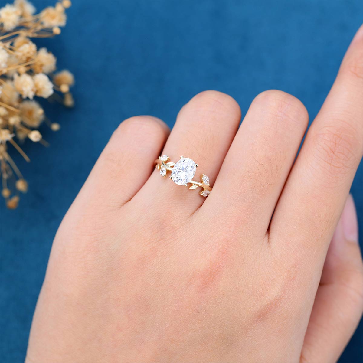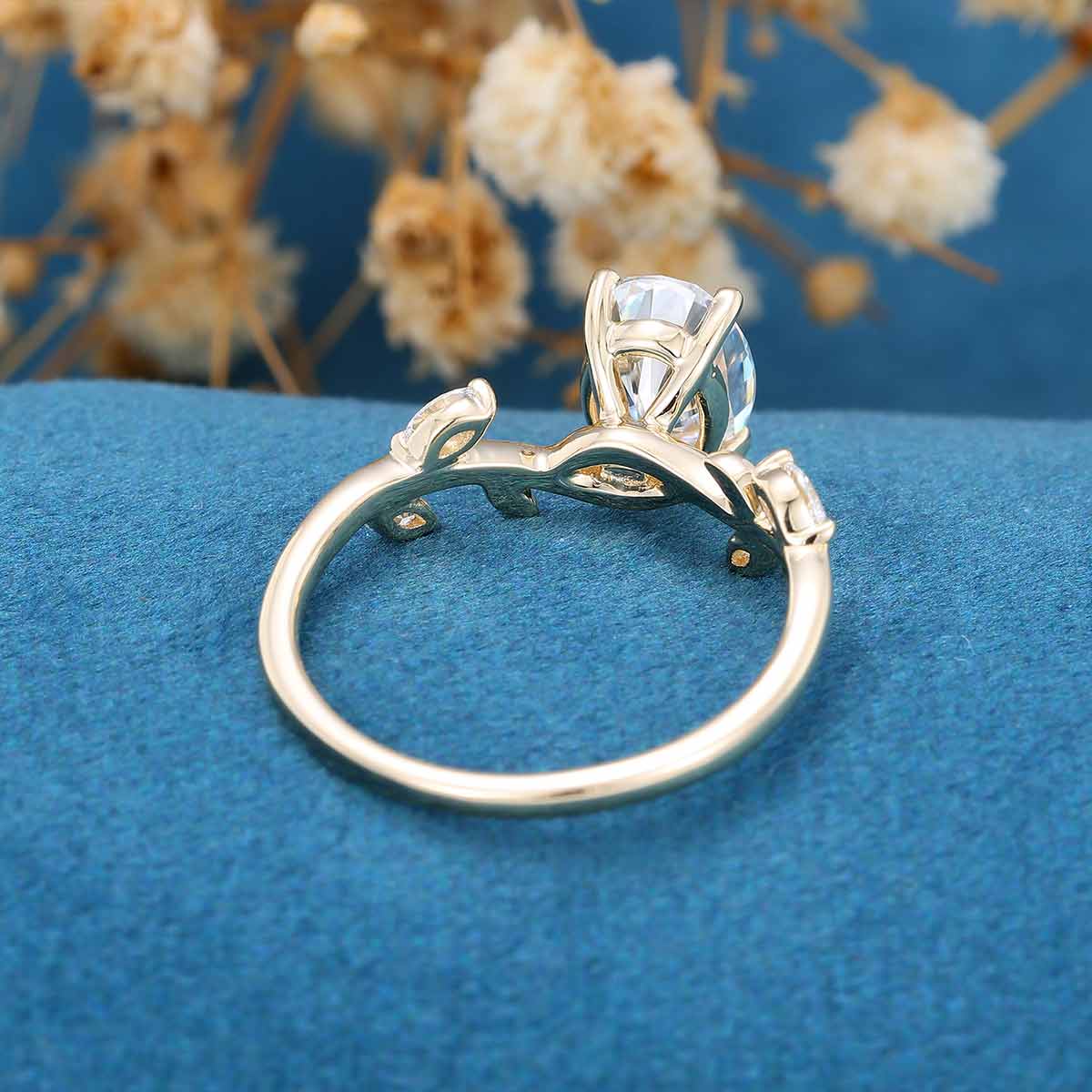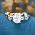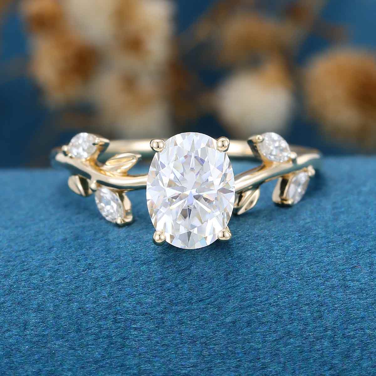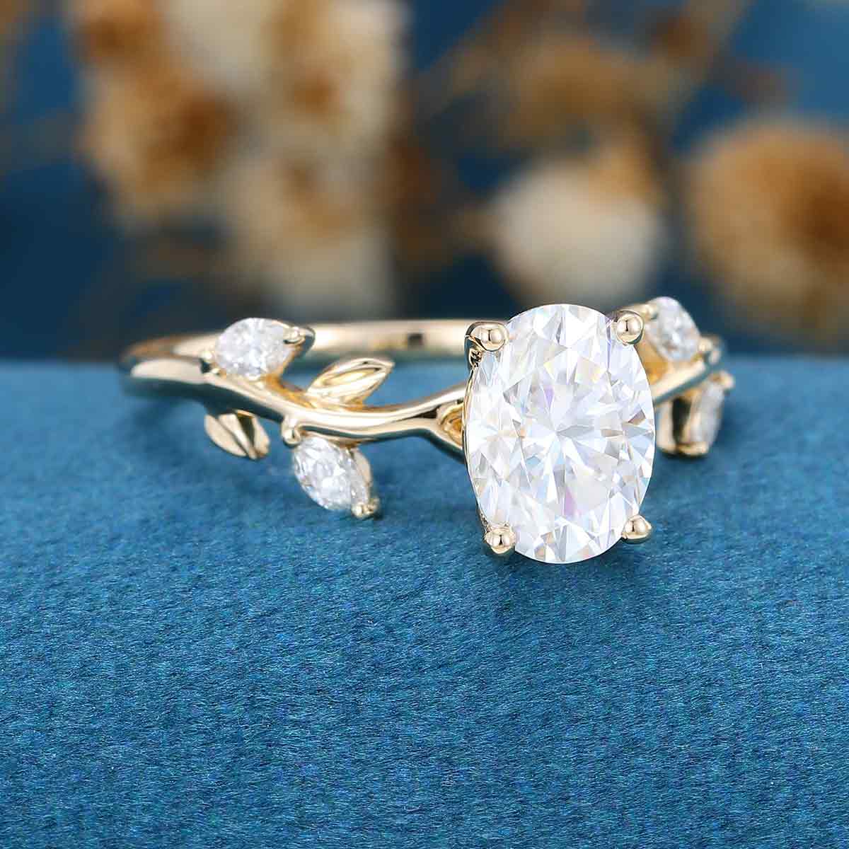 1.5 Carat Vintage Oval cut Moissanite leaf Engagement Ring