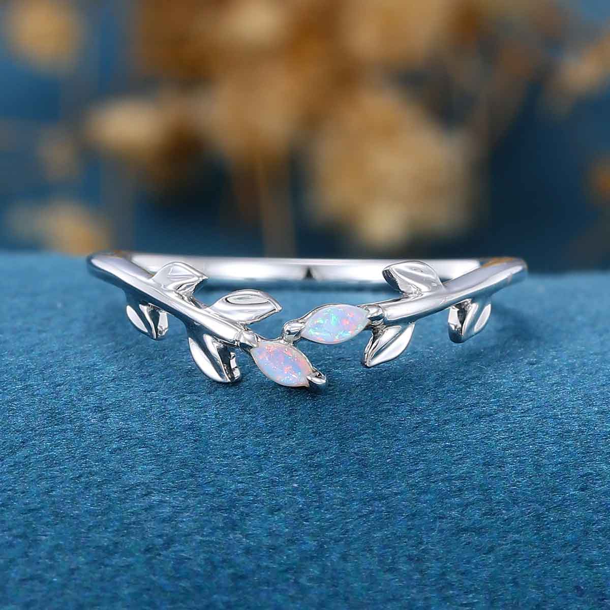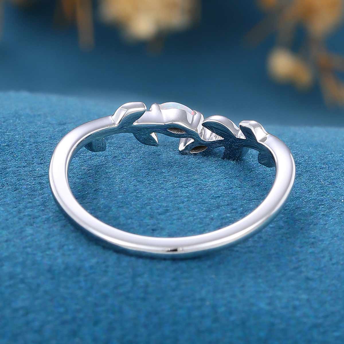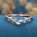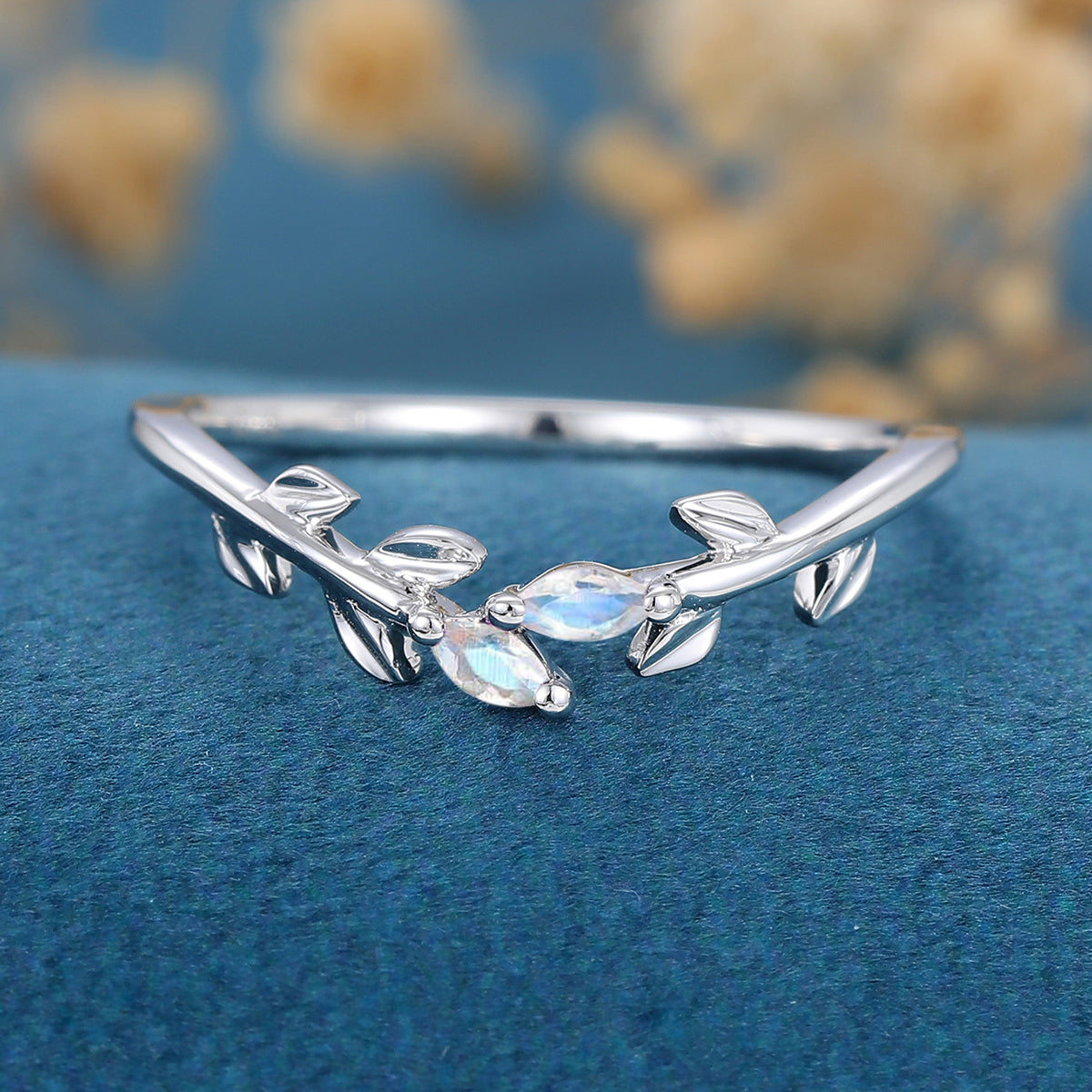 Marquise Moonstone leaf Curved Wedding Band Ring