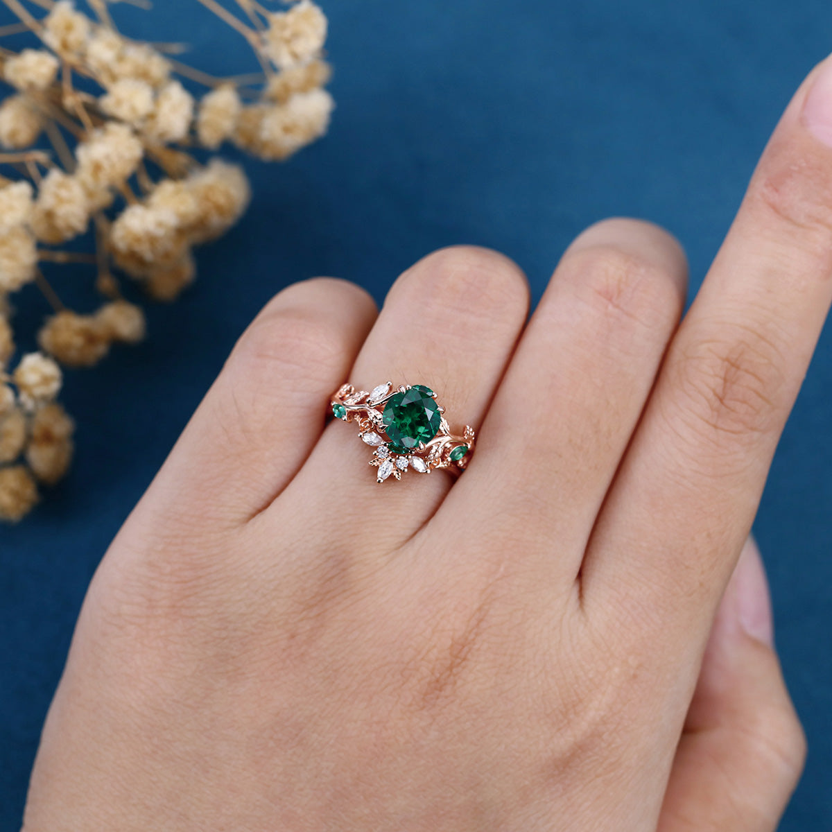 Vintage Round cut Lab Emerald Wedding Bridal set